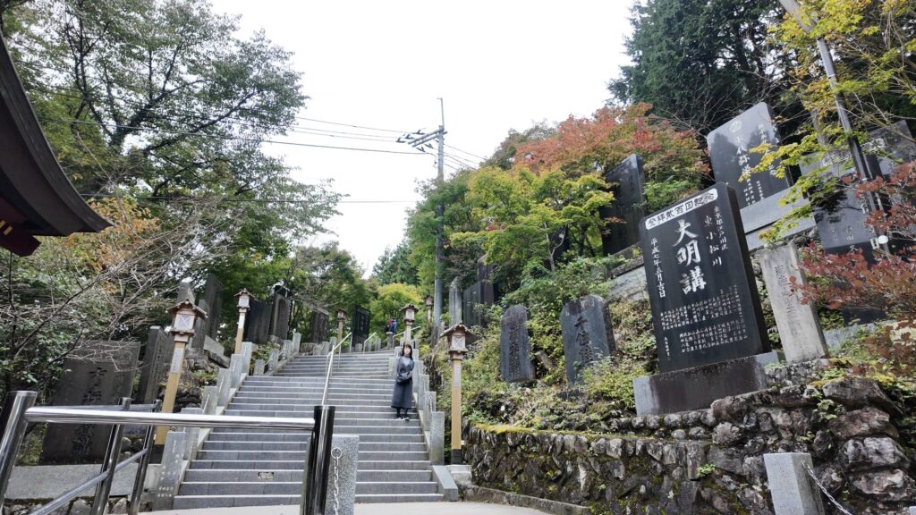登山道は、御嶽駅からバスで移動した先 御嶽登山鉄道(ケーブルカー) 滝本駅 のそばにあります。